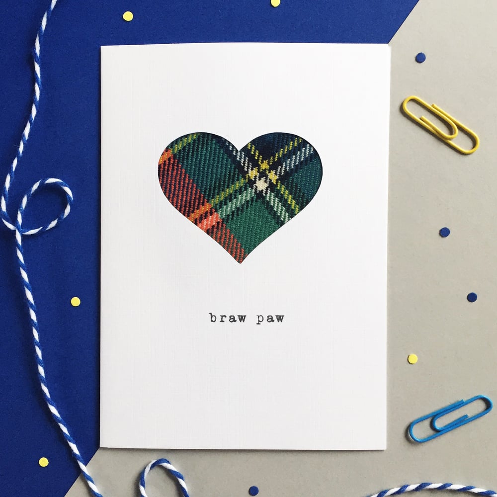 Our cards are made from good quality linen embossed card, cut and pieced together by hand with real tartan in Bonnie Scotland. As our cards are handmade, each one will be slightly different- if you're after a certain colour range of tartan please specify when you make your purchase. If you don't tell us a colour option we'll just send you out one at random (don't worry, it'll still be beautiful).